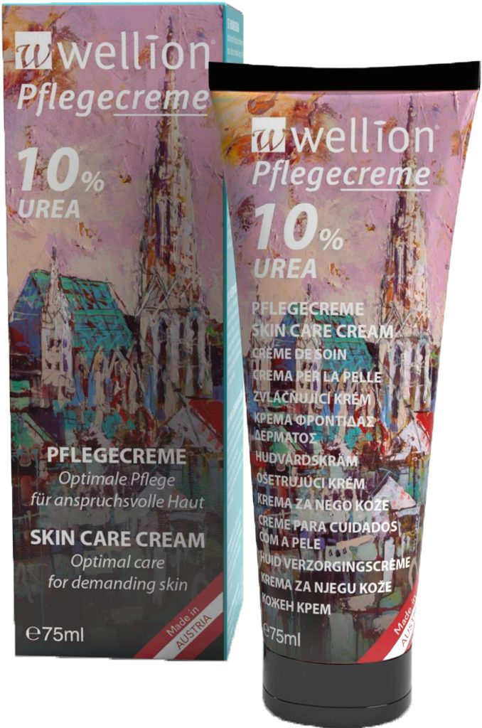 - Zloženie: Močovina v koncentrácii 10 % viaže vlhkosť obsiahnutú v pokožke a zvyšuje jej elasticitu. Znižuje veľké rohovatenie kože, urýchľuje hojenie rán a zastavuje svrbenie kože. Chráni proti baktériám a plesniam. Ochranný kožný krém Wellion neobsahuje parfumy či farbivá a preto je s pokožkou dokonale zlučiteľný. Do kože dodáva tuky, preto je možné krém odporučiť pre veľmi suchú pokožku.